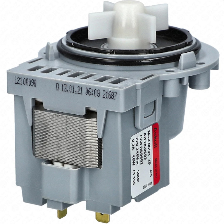Askoll M325 / M231 ürítő szivattyú modogatógépekhez, réz tekercs, hátul stekkeres (40W)