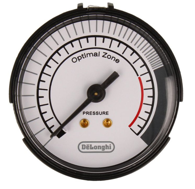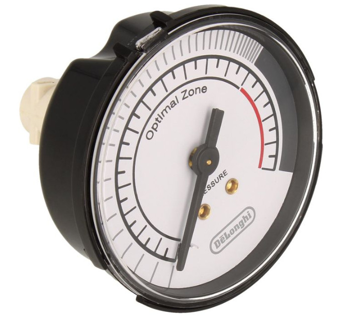 A nyomásmérő rendszerint a kávégép elülső paneljén helyezkedik el, jól láthatóan mutatva a megfelelő bar‑értékeket