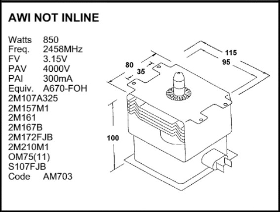 Magnetron (univerzális, 2M167B-M23E) mikrohullámú sütő